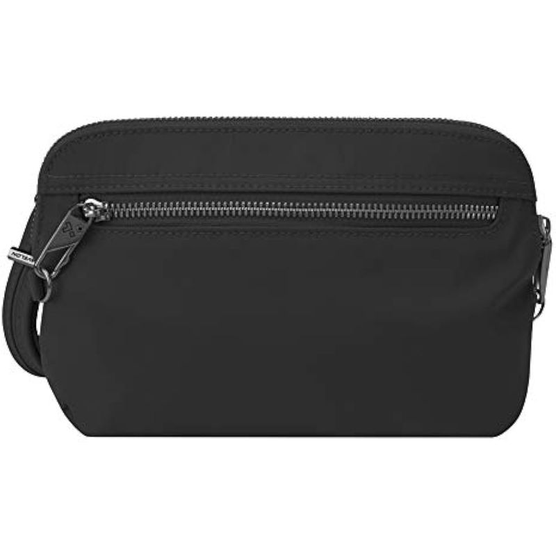 Este elegante bolso cruzado convertible se puede llevar de tres maneras. Ofrece funcionalidad y versatilidad como bolso de mano, pulsera o cruzado. El compartimento principal de bloqueo tiene ranuras para pasaporte y tarjetas protegidas por RFID para mantener tu información personal segura. La correa de hombro resistente a las cortes, ajustable y extraíble se puede fijar a un objeto estacionario para evitar que se agarre.