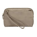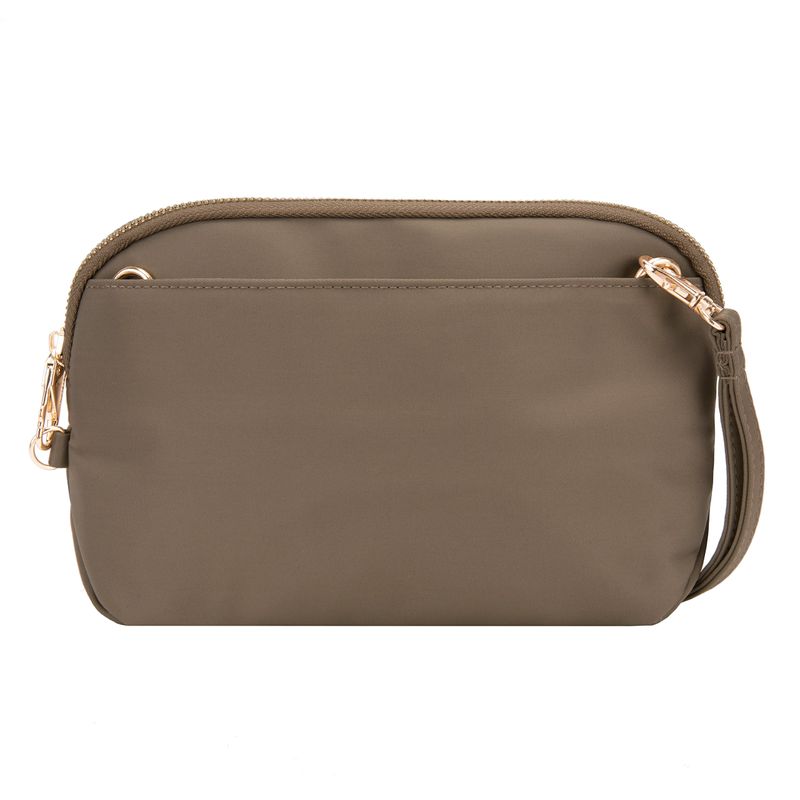 Este elegante bolso cruzado convertible se puede llevar de tres maneras. Ofrece funcionalidad y versatilidad como bolso de mano, pulsera o cruzado. El compartimento principal de bloqueo tiene ranuras para pasaporte y tarjetas protegidas por RFID para mantener tu información personal segura. La correa de hombro resistente a las cortes, ajustable y extraíble se puede fijar a un objeto estacionario para evitar que se agarre.