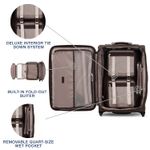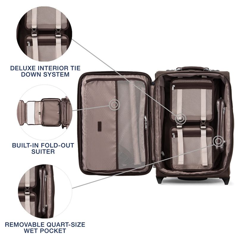 Estas maletas tienen un sistema de amarre interior de lujo que incluye bolsillos integrados para accesorios para un acceso rápido a los elementos esenciales y un bolsillo extraíble para ropa húmeda de un cuarto de galón que cumple con la TSA y perfecto para guardar artículos de tocador.