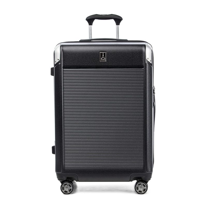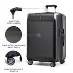 Elegante, ultra duradero y cargado de características, el equipaje de mano Platinum® Elite expandible ofrece todas las comodidades modernas que deseas en un sofisticado equipaje de mano que se adapta cuando necesitas más espacio de embalaje. Esta maleta de viaje te permite alimentar tus dispositivos electrónicos sobre la marcha utilizando puertos USB A y C externos con capacidades de carga rápida y un bolsillo dedicado para batería de acceso externo patente pendiente que proporciona almacenamiento compatible con la FAA para tu banco de energía. El equipaje de mano con ruedas giratorias está probado para caber en los contenedores superiores de la mayoría de las principales aerolíneas nacionales, este equipaje de mano también ofrece una opción de expansión con cremallera de 2 pulgadas para aumentar la capacidad de embalaje cuando sea necesario. Diseñado para un gran aspecto y máxima resistencia, este equipaje rígido está fabricado de forma duradera con una carcasa de policarbonato 100 ultra fuerte, fácil de limpiar que se flexiona al impacto para evitar grietas y mantener el contenido protegido, mientras que su atractivo acabado texturizado ayuda a reducir la visibilidad de rasguños o arañazos. El ribete de cuero genuino añade sofisticación, y la distintiva armadura de esquina de aluminio protege las zonas de alto impacto con estilo. La cerradura integrada aprobada por la TSA permite a las autoridades un acceso seguro para la inspección cuando sea necesario. Empaca con facilidad dentro del diseño de concha con dos paneles divisores con cremallera que mantienen el contenido separado y almacenado de forma segura en su lugar. Este equipaje de mano duro tiene múltiples bolsillos para accesorios que proporcionan una organización integrada, y un práctico bolsillo resistente al agua guarda artículos húmedos o artículos de aseo personal. En movimiento, esta belleza compacta vuela con un control preciso y un giro sin esfuerzo, gracias al exclusivo sistema PrecisionGlide™ de Travelpro®, ocho ruedas giratorias autoalineables MagnaTrac® lideradas por un mango PowerScope Lite resistente y ajustable de cuatro paradas con cómodo agarre de contorno. El equipaje duro con ruedas giratorias está respaldado por nuestra garantía limitada de por vida con la promesa de compañero de confianza que incluso cubre los daños causados por las aerolíneas u otros transportistas comunes durante los primeros cinco años de garantía de por vida.