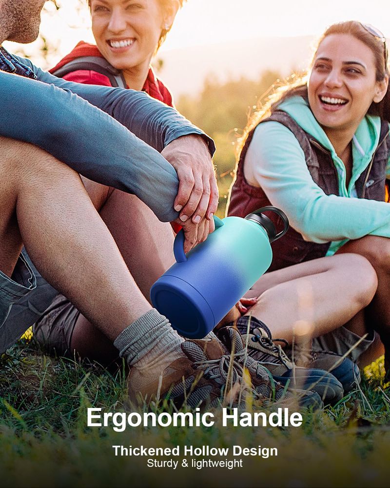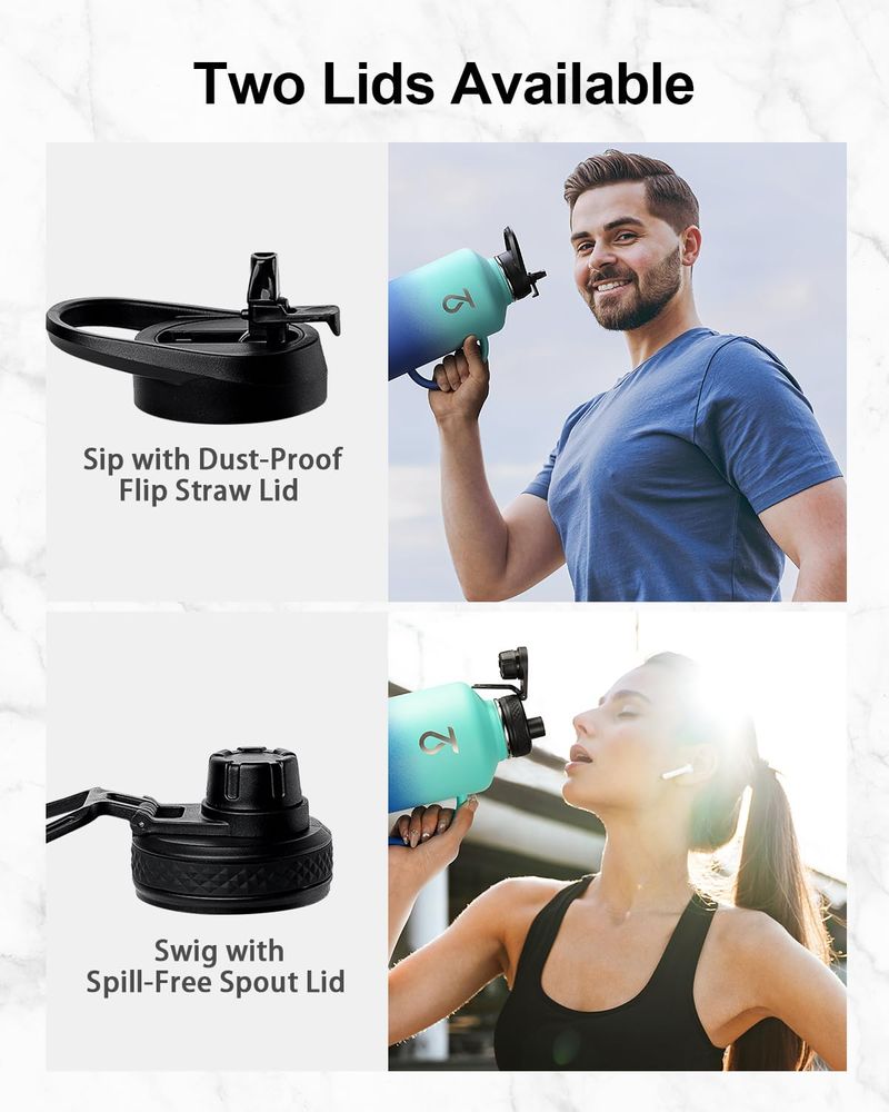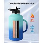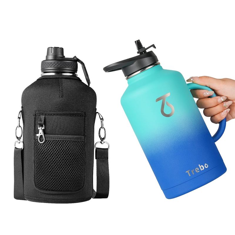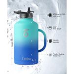 Trebo Botella de agua de 64 onzas aislada con popote y 2 tapas, jarra grande de metal de acero