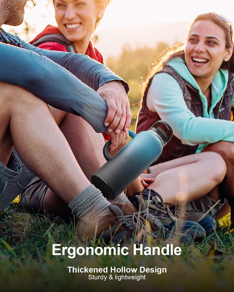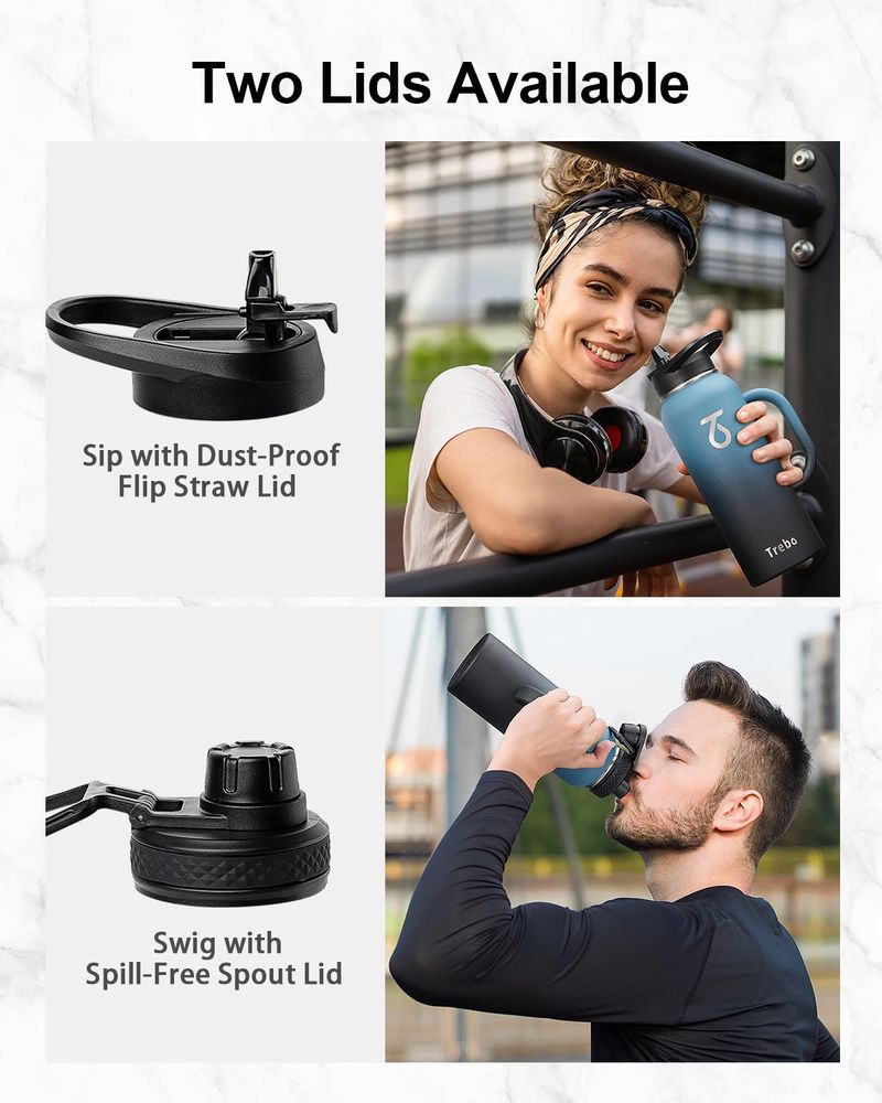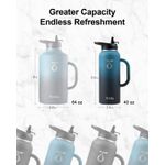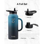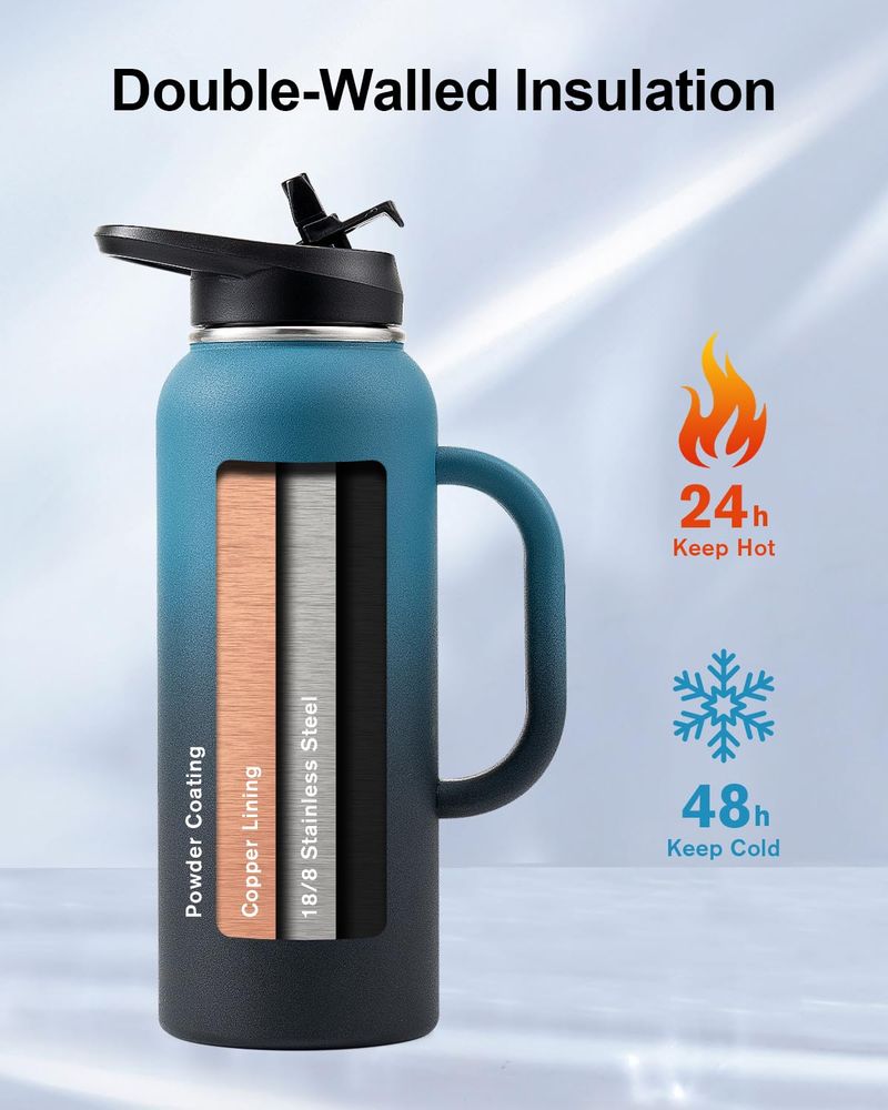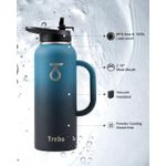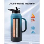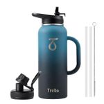 Trebo Botella de agua de 64 onzas aislada con popote y 2 tapas, jarra grande de metal de acero