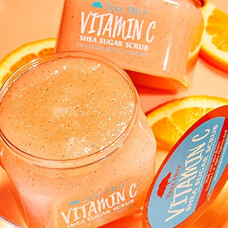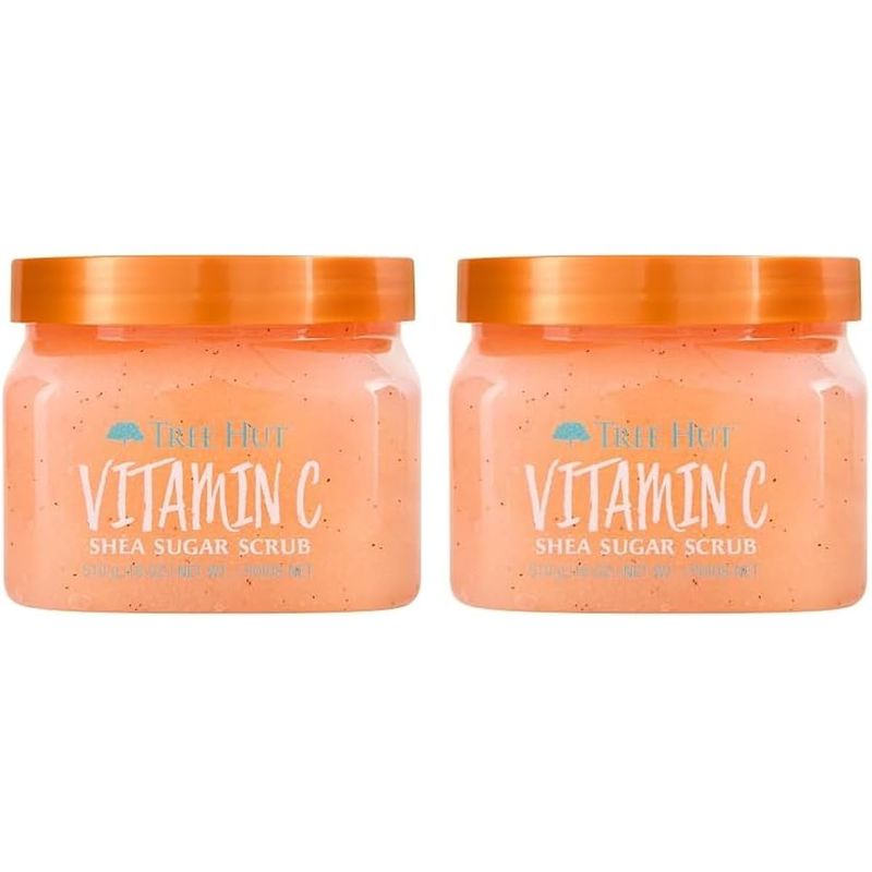 TREE HUT EXFOLIANTE DE AZúCAR DE KARITé CON VITAMINA C, 18 ONZAS, EXFOLIANTE ULTRA HIDRATANTE Y EXFOLIANTE PARA EL CUIDADO CORPORAL ESENCIAL NUTRITIVO (PAQUETE DE 2)