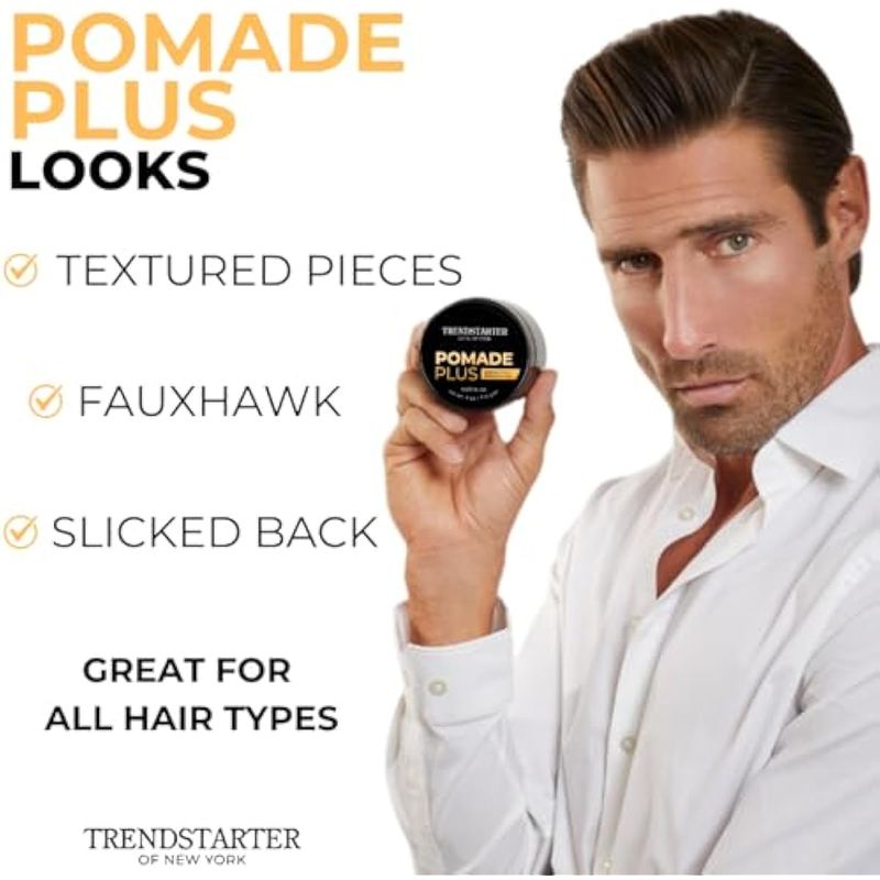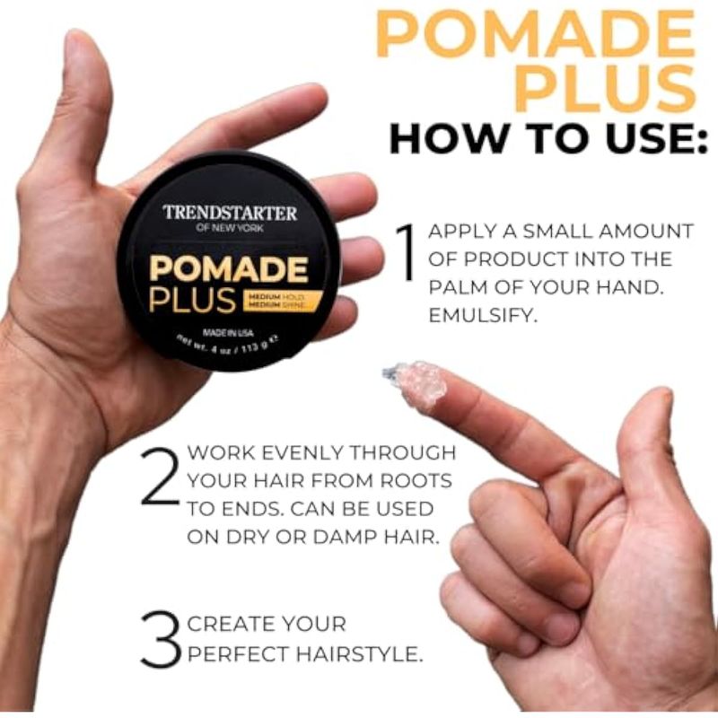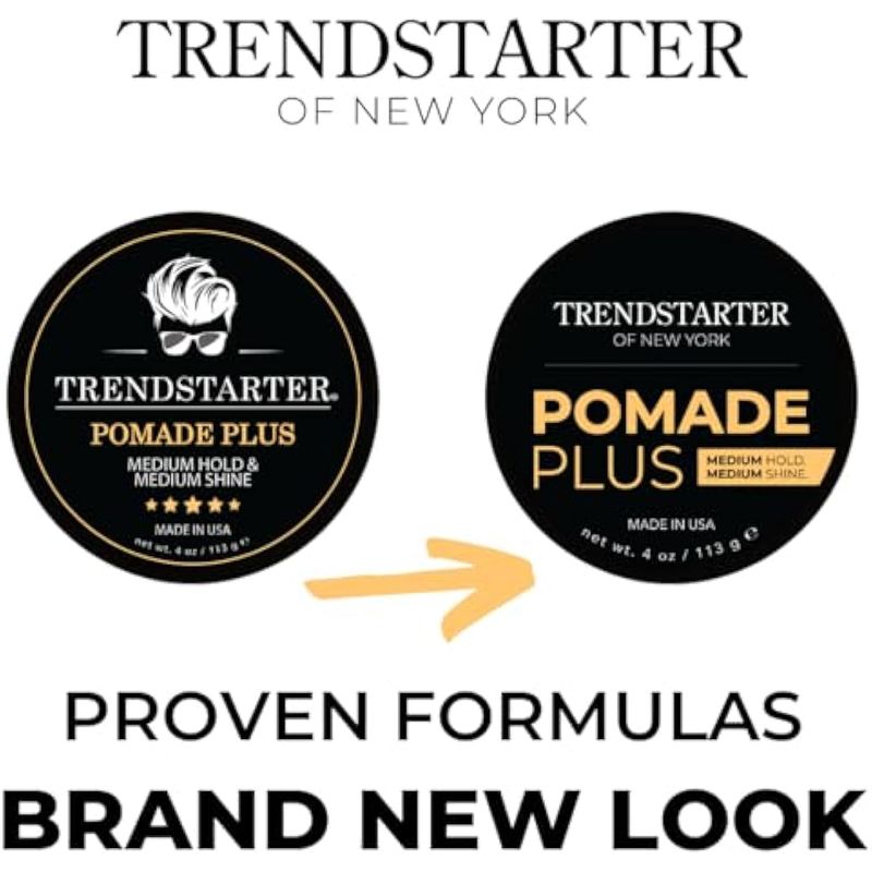 TRENDSTARTER - POMADE PLUS (4 OZ) - FIABILIDAD MEDIA - BRILLO MEDIO - PRODUCTO DE GEL PARA PEINAR EL CABELLO PREMIUM SIN ESCAMAS A BASE DE AGUA PARA TODO TIPO DE CABELLO - FIABILIDAD DURANTE TODO EL
