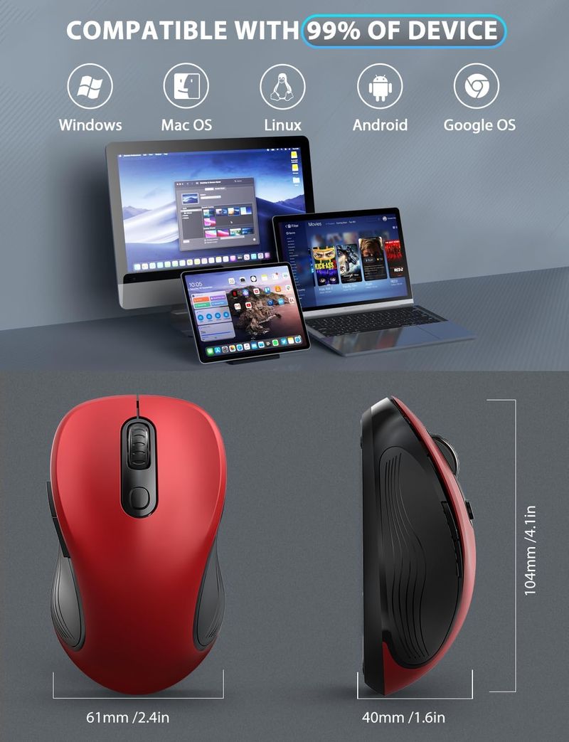 INFORMÁTICAACCESORIOS DE INFORMATICAMOUSETrueque Mouse inalámbrico para laptop, mouse ergonómico de computadora de 2.4 GHz con botones de