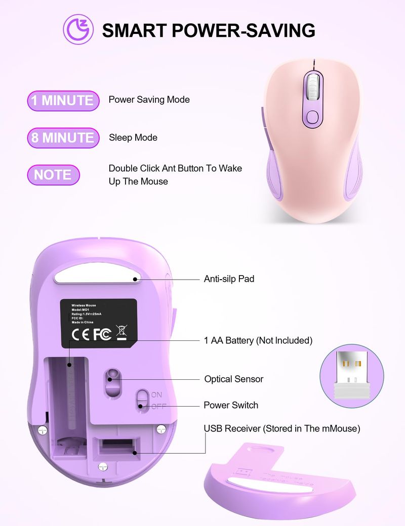 Trueque Mouse inalámbrico para laptop, mouse ergonómico de computadora de 2.4 GHz con botones de
