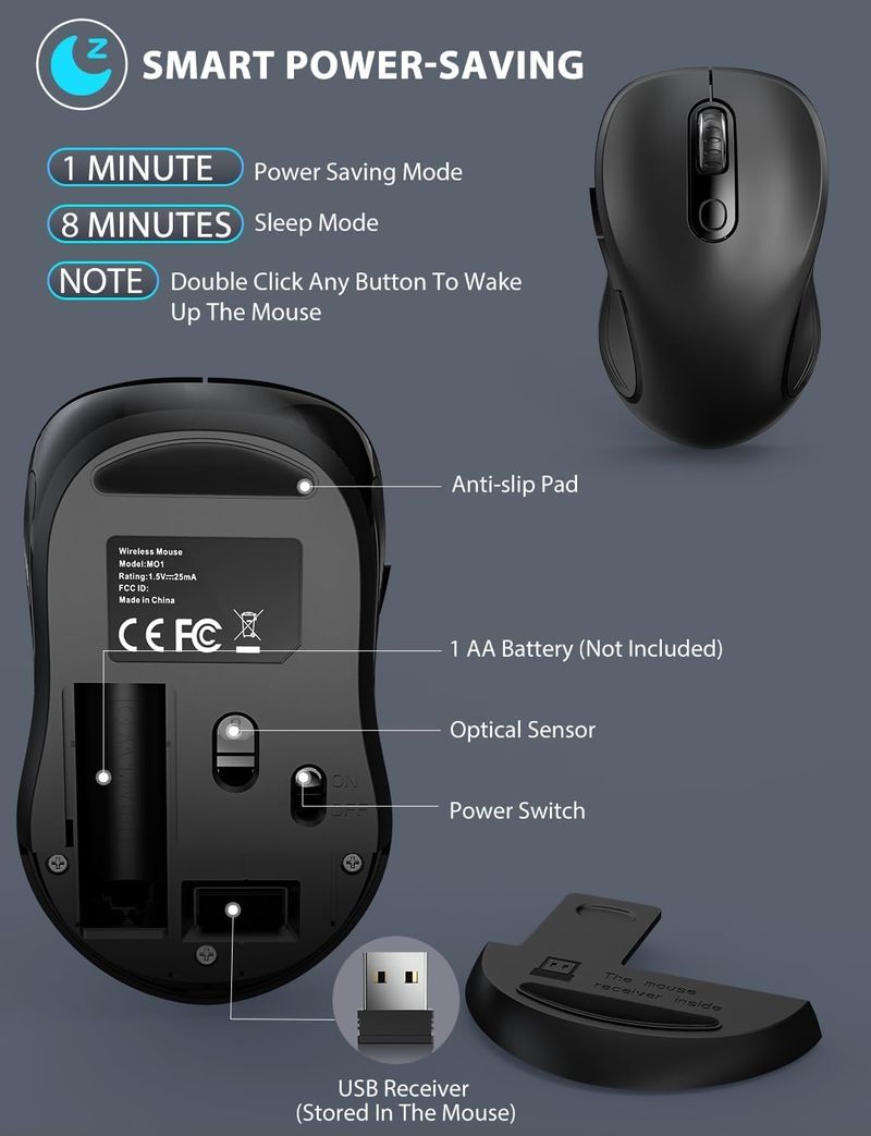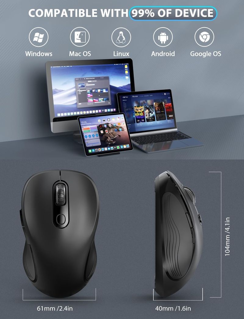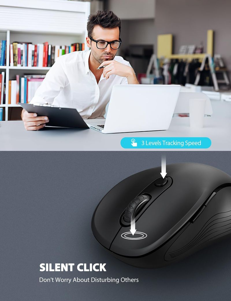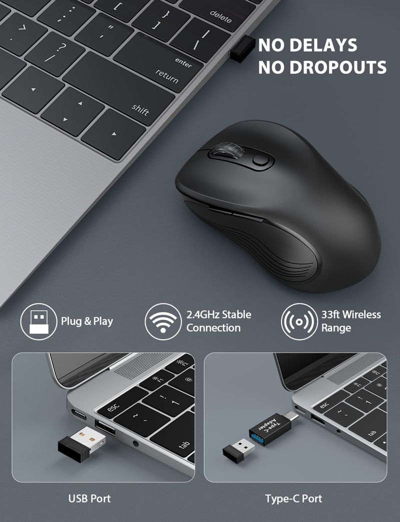 Trueque Mouse inalámbrico para laptop, mouse ergonómico de computadora de 2.4 GHz con botones de