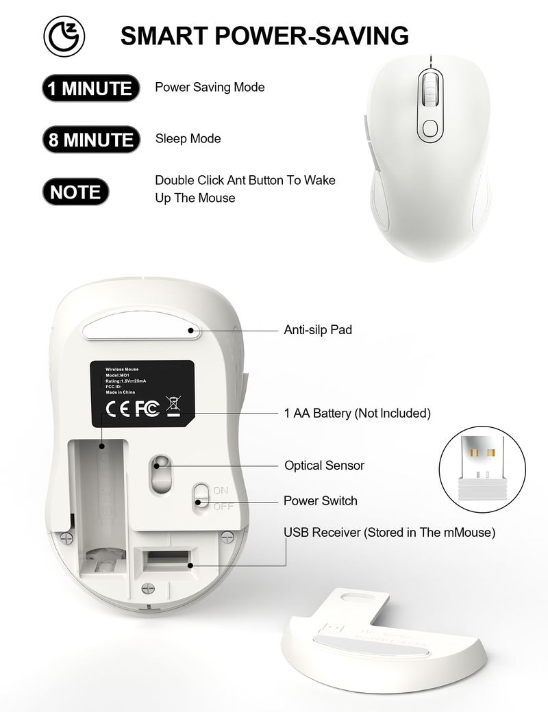 Trueque Mouse inalámbrico para laptop, mouse ergonómico de computadora de 2.4 GHz con botones de
