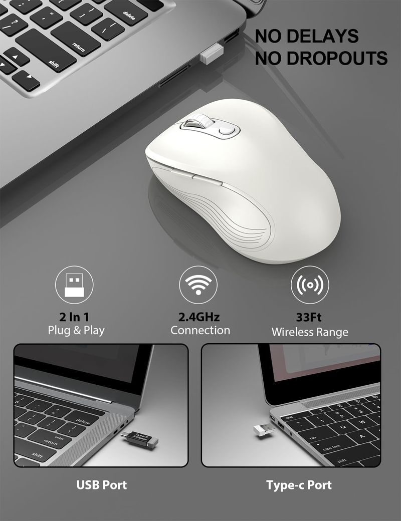 INFORMÁTICAACCESORIOS DE INFORMATICAMOUSETrueque Mouse inalámbrico para laptop, mouse ergonómico de computadora de 2.4 GHz con botones de