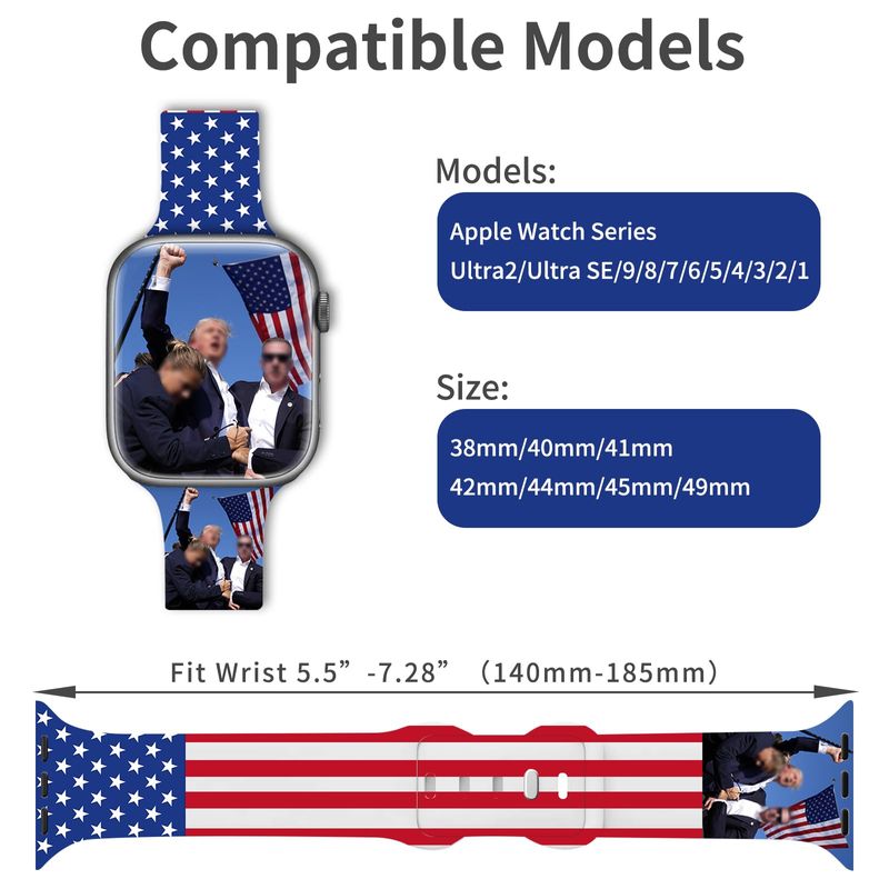 TELEFONIASMARTWATCHTrump - Correas de silicona compatibles con Apple Watch Band 1.496 in 1.575 in 1.614 in 1.654 in