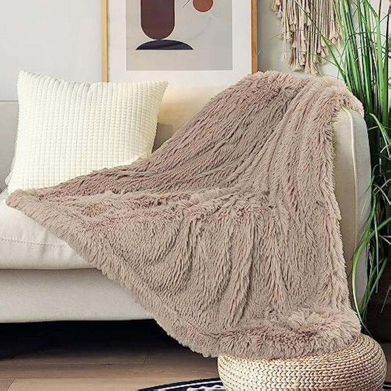 TUDDROM - MANTA DE PELO SINTéTICO SUAVE Y DECORATIVA, REVERSIBLE, DOBLE CAPA, LIGERA, DE PELO LARGO, MULLIDA, CáLIDA, ACOGEDORA, DE FELPA, DE MICROFIBRA, PARA SOFá