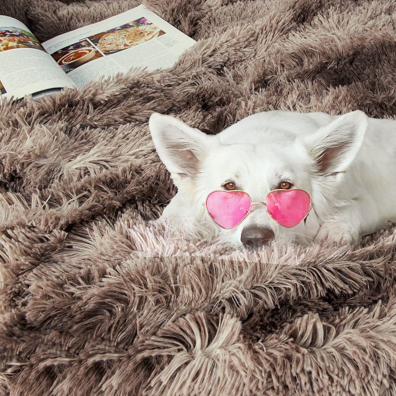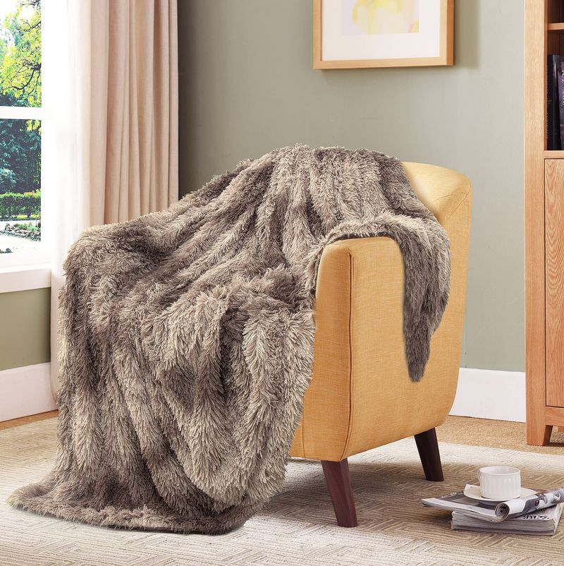 Tuddrom - Manta de pelo sintético suave y decorativa, reversible, doble capa, ligera, de pelo largo,