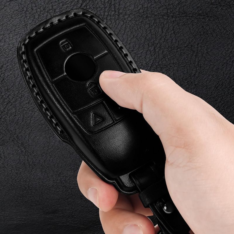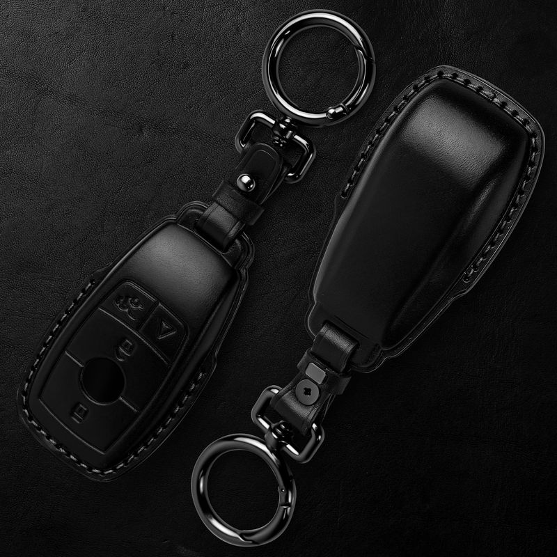 RODADOSHERRAMIENTAS PARA AUTOTukellen Funda de piel auténtica con llavero, protector para Mercedes Benz, apta para E/2017-2023,