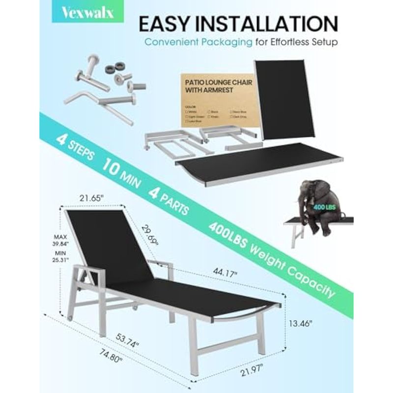 Materiales de alta calidad: esta silla de patio está fabricada con marcos de aluminio de alta calidad y tela de textileno, lo que garantiza una durabilidad excepcional y una robusta adaptabilidad ambiental. La tela cuenta con propiedades resistentes al agua, de secado rápido y altamente transpirables, proporcionando un fácil mantenimiento y la máxima comodidad.