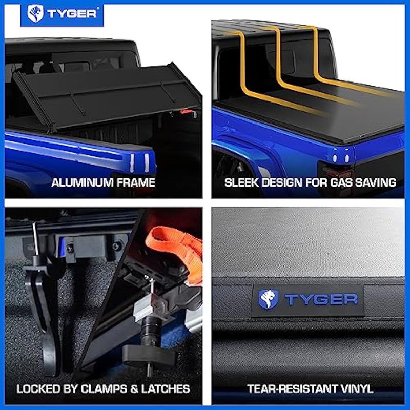 Tyger Auto T3 - Cubierta suave de triple pliegue para caja de camioneta compatible con Jeep