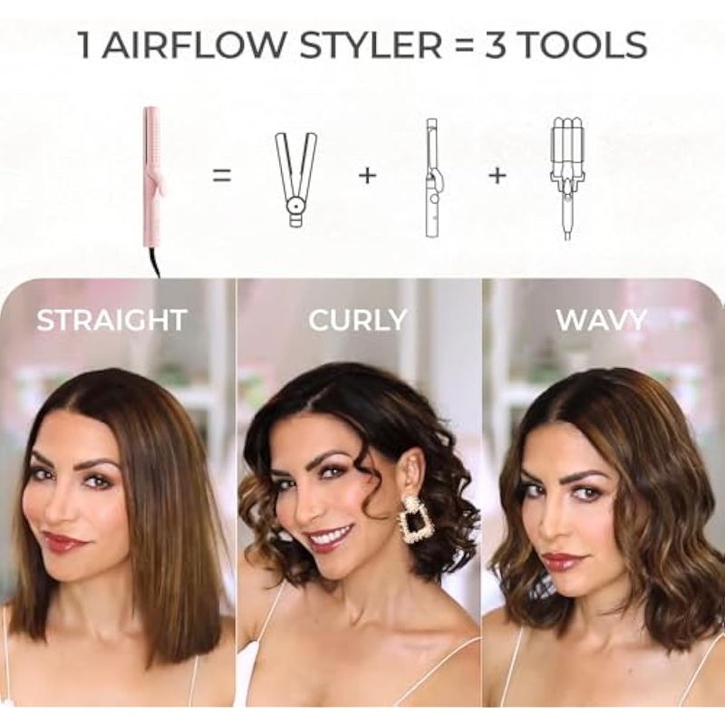 TYMO AIRFLOW STYLER - PLANCHA DE CERáMICA PLANA 2 EN 1, VARITA DE CURADO PROFESIONAL CON AIRE FRíO IóNICO DE 360°, 5 TEMPERATURAS AJUSTABLES Y DOBLE VOLTAJE PARA CABELLO LARGO Y CORTO