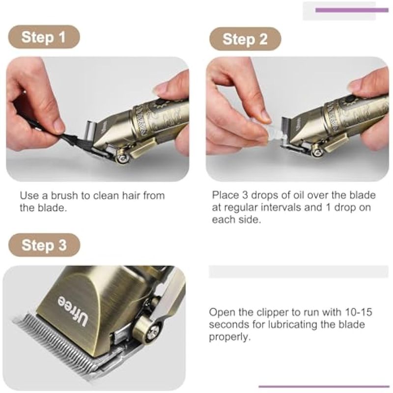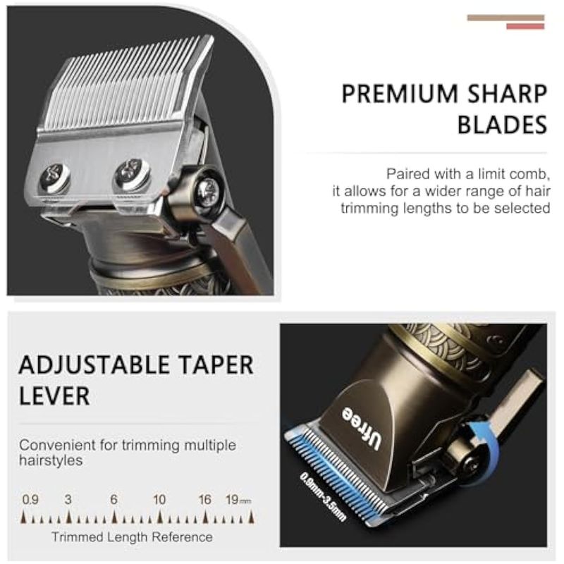 Kit de corte de cabello: el juego de cortadoras y recortadoras Ufree viene con una cortadora de pelo inalámbrica y 8 peines guía para cortapelos de peluquería 116", 18", 316", 14", 38", 12", 58", 34", 1 capa de corte de cabello, 1 cepillo de limpieza, 1 peine para el cabello, una botella de aceite lubricante, 1 cable de carga tipo C. Puede completar el recorte del cabello para los miembros de la familia en casa, lo que puede ahorrar tiempo y costos de corte de pelo.