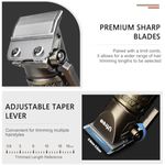 Hoja ultra afilada: con cuchillas afiladas puede cortar el cabello grueso y grueso sin tirar del cabello y puede permanecer más afilado por más tiempo. Además, está equipado con una palanca cónica ajustable para ajustar la longitud de la hoja para mezclar y desvanecer los cortes de pelo.