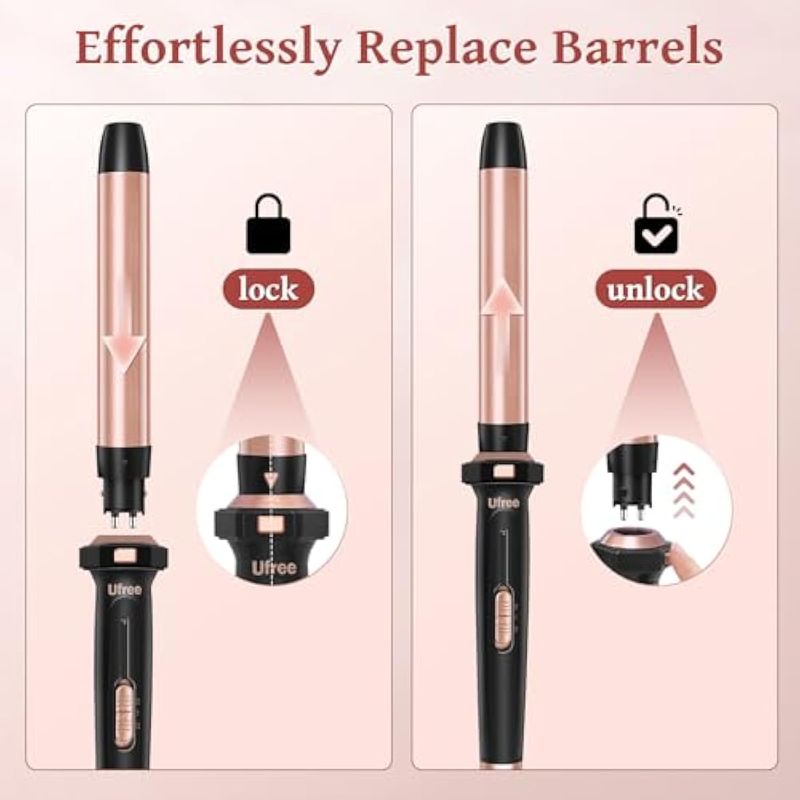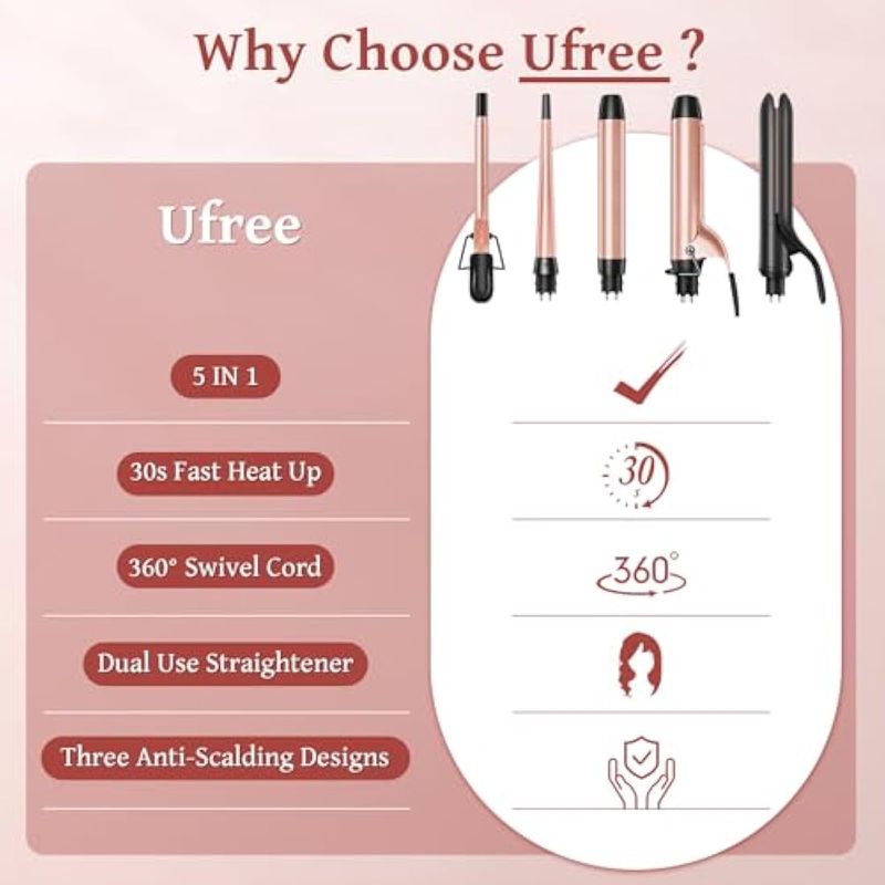 UFREE RIZADOR 5 EN 1 CON BARRILES DE CERáMICA INTERCAMBIABLES (0.35 A 1.25 PULGADAS), JUEGO DE VARITA RIZADORA CON PLANCHA PLANA, CALENTAMIENTO INSTANTáNEO PROFESIONAL, RIZADOR DE PELO DE DOBLE