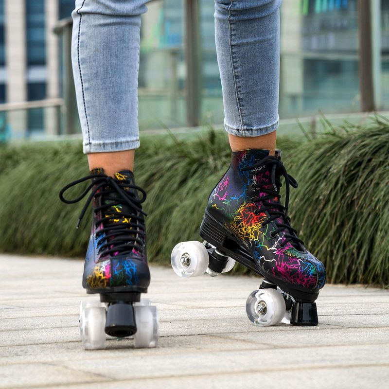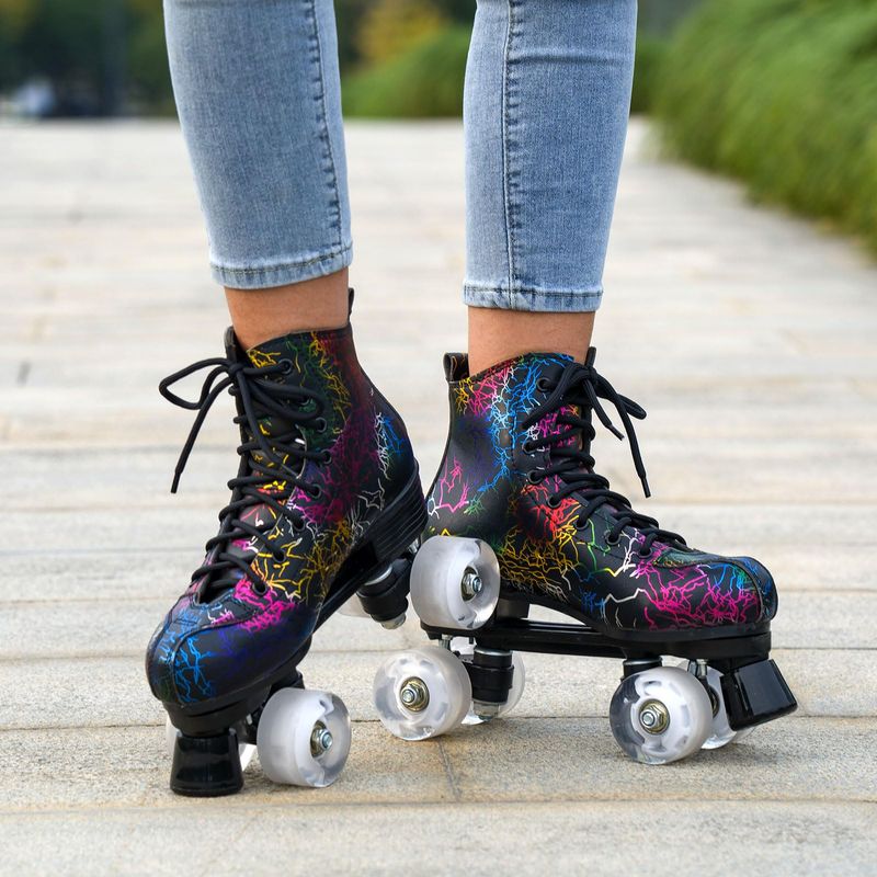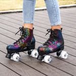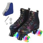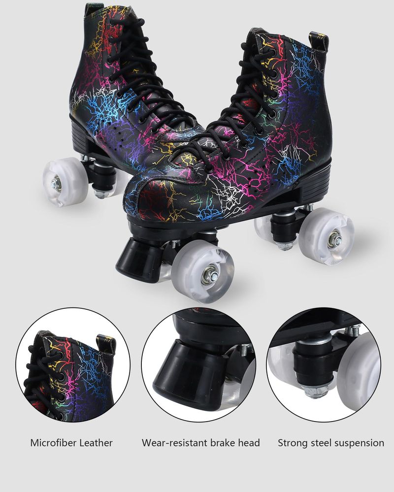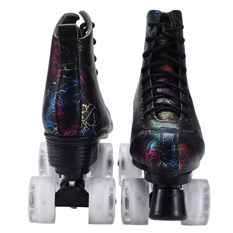 Ugboiu Patines para hombres y mujeres, patines Derby negros con 4 ruedas brillantes, patines