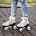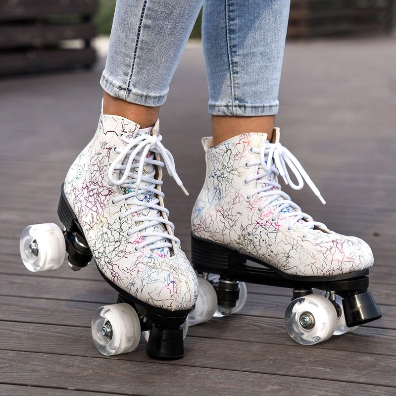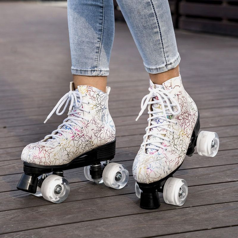 RODADOSMONOPATINES Y PATINESUgboiu Patines para hombres y mujeres, patines Derby negros con 4 ruedas brillantes, patines