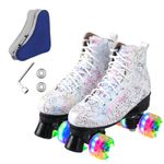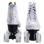 Ugboiu Patines para hombres y mujeres, patines Derby negros con 4 ruedas brillantes, patines