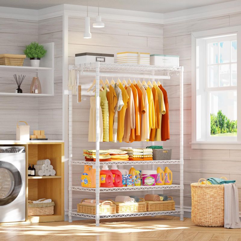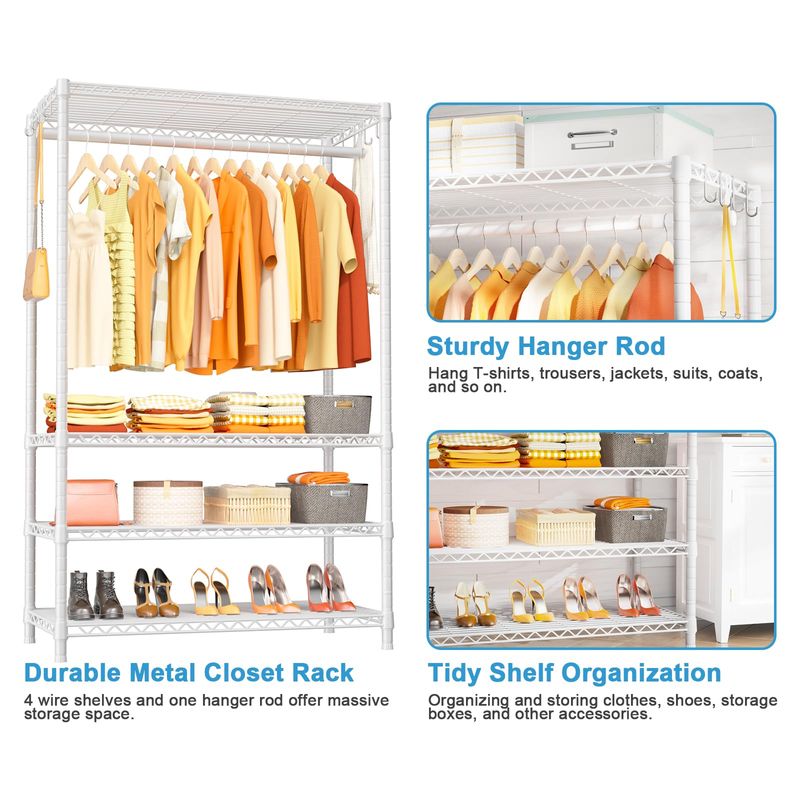 HOGARAMOBLAMIENTOMUEBLES DE DORMITORIOUlif H2 - Perchero de alta resistencia, 4 niveles, para colgar ropa con estantes y perchas,