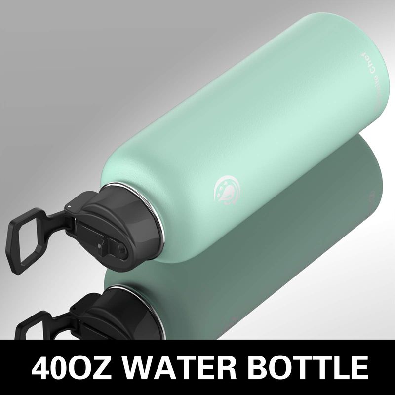 Umite Chef Botella de agua de acero inoxidable con pajilla, 64 onzas de boca ancha aislada al vacío,
