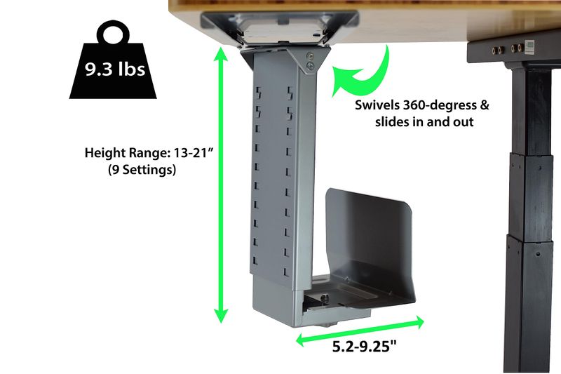 Uncaged Ergonomics CPU2 Soporte ajustable para debajo del escritorio, soporte giratorio de acero