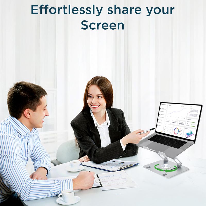 ROTATE: Mejore la colaboración y la flexibilidad con un soporte para computadora portátil con rotación de 360°, perfecto para diseñadores, presentadores y trabajadores remotos que comparten pantallas sin esfuerzo.