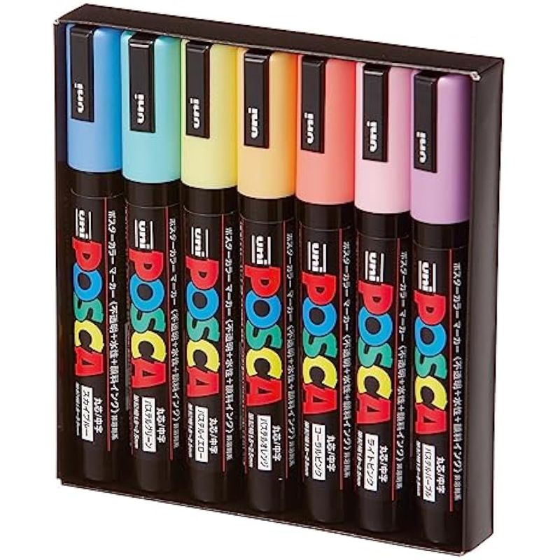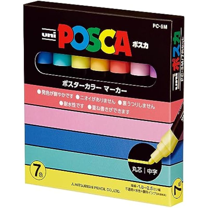 UNI POSCA - ROTULADOR DE PUNTA MEDIA, 7 COLORES NATURALES (PC-5M 7C), AMARILLO PASTEL, NARANJA PASTEL, VERDE PASTEL, MORADO PASTEL, AZUL CIELO, ROSA CLARO, ROSA CORAL