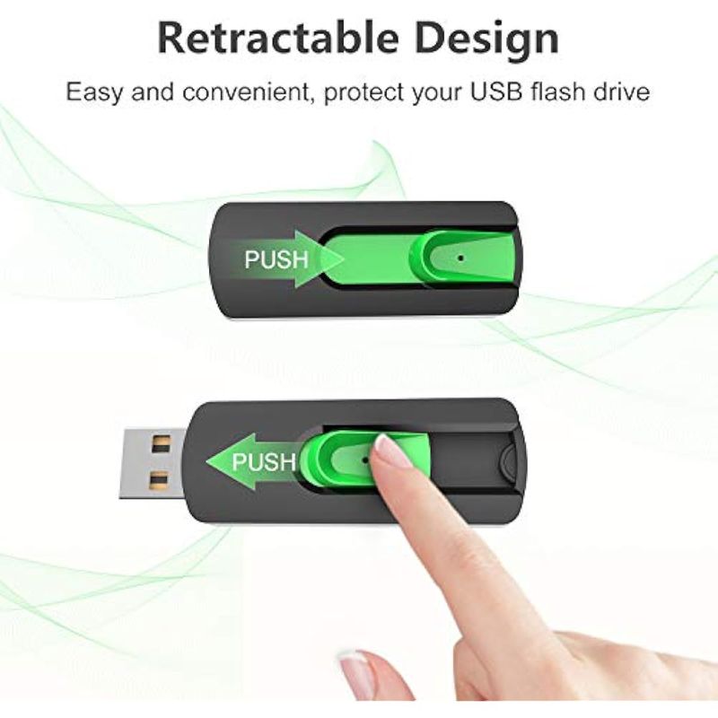 Diseño retráctil: el diseño retráctil de la unidad USB puede proteger eficazmente la interfaz USB. El diseño sin tapa puede evitar perder la tapa. Peso: 0.25 oz, tamaño: 2.6 × 0.8 × 0.4 pulgadas. Portátil para llevar tu mundo digital a cualquier lugar.