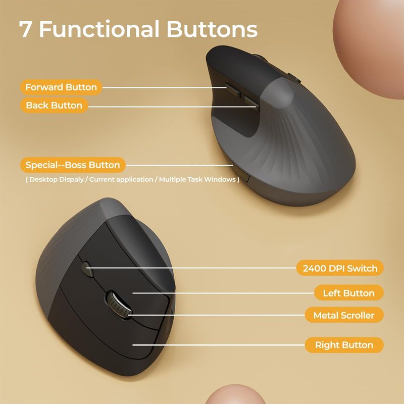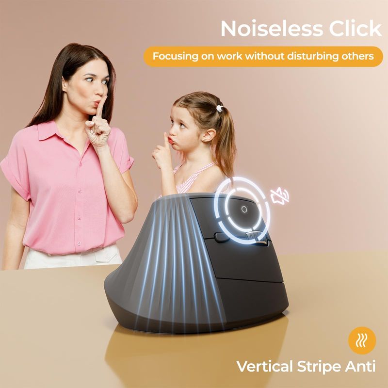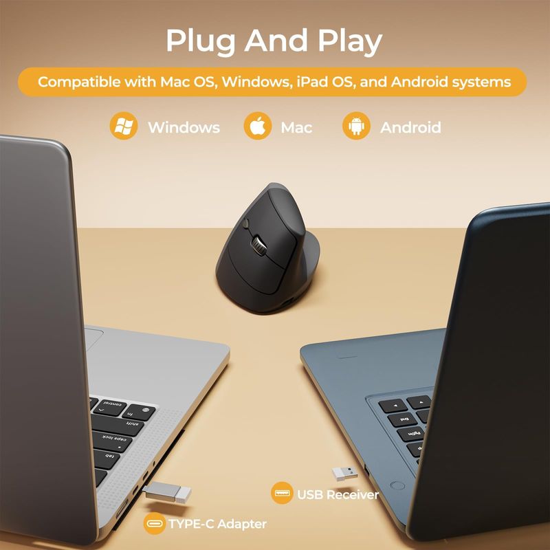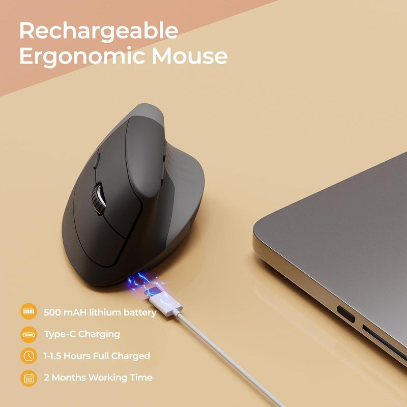 Unipows Ratón vertical ergonómico, inalámbrico tipo C recargable, silencioso, negro, diestro,