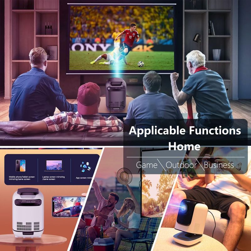 Enfoque electirc y corrección trapezoidal automática de ± 15°: el proyector portátil proporciona una pantalla de proyección de 49 a 140 pulgadas, a una distancia de proyección de 6.3 a 12.8 pies. La corrección trapezoidal hace que configurar y obtener la posición perfecta de la pantalla sea muy fácil. Es una buena opción como cine en casa en el dormitorio interior, y también es bueno para la noche de cine al aire libre para familias.