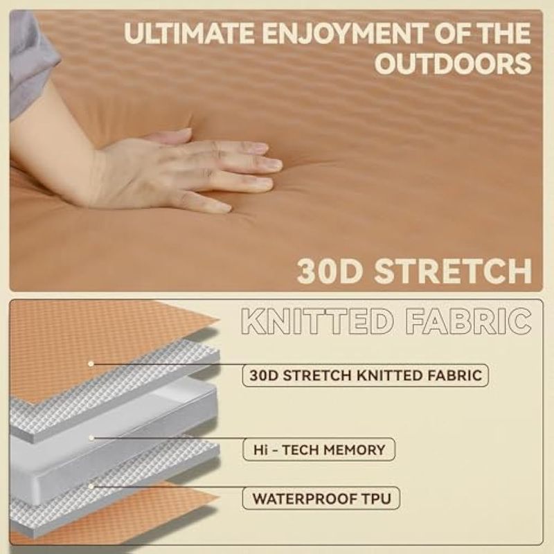 Colchoneta gruesa de alta calidad: tejido de punto 30D cubierto con TPU, transpirable, absorción de sudor, aislamiento térmico y resistencia al desgarro, más resistente al desgaste que la tela de nailon en el mercado, su estructura interna única garantiza una distribución uniforme del aire y la espuma en toda la almohadilla, reduciendo eficazmente los puntos de presión, esta almohadilla para dormir se adapta a una variedad de tipos de cuerpo.