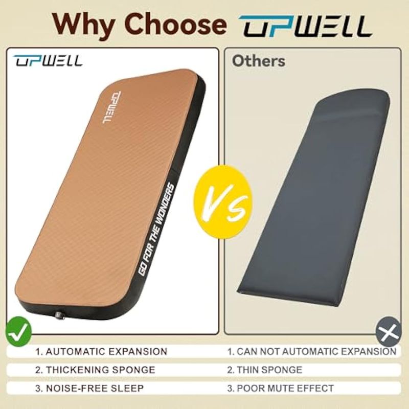 UPWELL COLCHONETA DE DORMIR AUTOINFLABLE DE 4.5 PULGADAS DE GROSOR, COLCHóN DE CAMPAMENTO CON ESPUMA SóLIDA, ALFOMBRILLA DE DORMIR INDIVIDUAL, INFLADO RáPIDO PORTáTIL PARA TAPETE AL AIRE LIBRE, CAMA