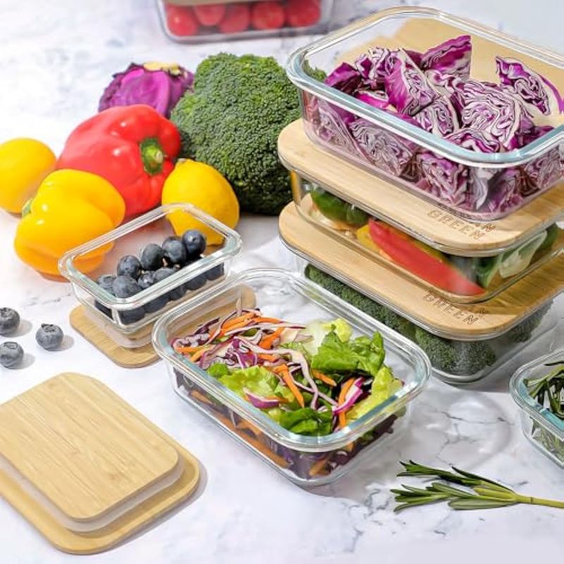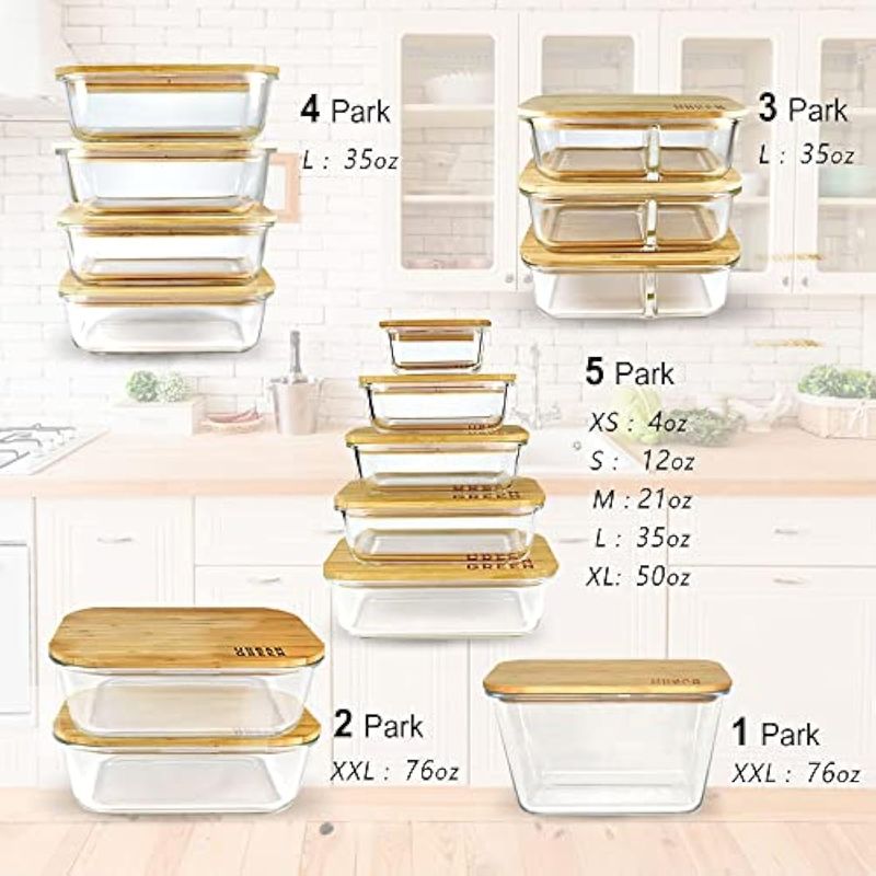 HOGARBAZARUTENSILIOS DE COCINAUrban Green Contenedores de vidrio con tapas de bambú, juego de recipientes de vidrio para