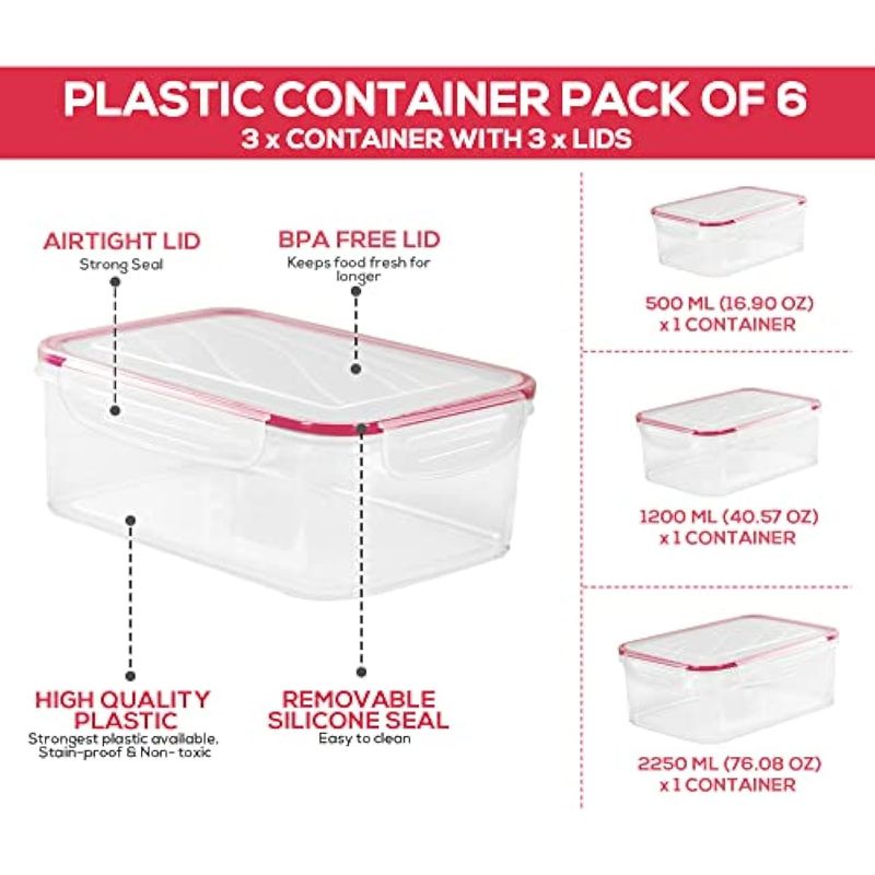 UTOPIA KITCHEN JUEGO DE RECIPIENTES DE PLáSTICO PARA ALMACENAMIENTO DE ALIMENTOS CON TAPAS HERMéTICAS, PAQUETE DE 6 (3 RECIPIENTES Y 3 TAPAS A PRESIóN), CAJAS DE ALMUERZO REUTILIZABLES Y SOBRANTES - A