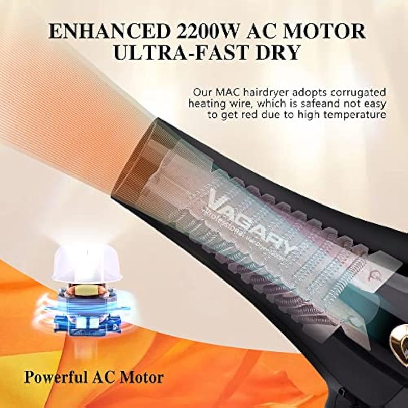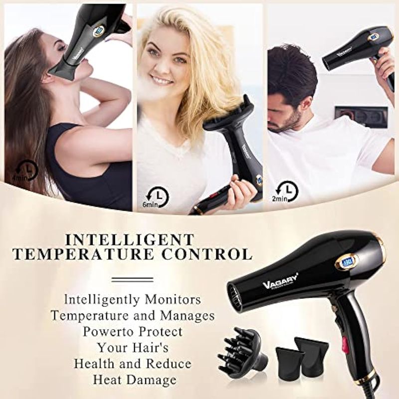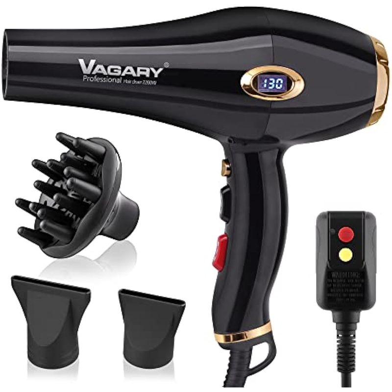 VAGARY 6685G - Secador de pelo profesional de salón de 2200 W con pantalla Icd, secador de soplado