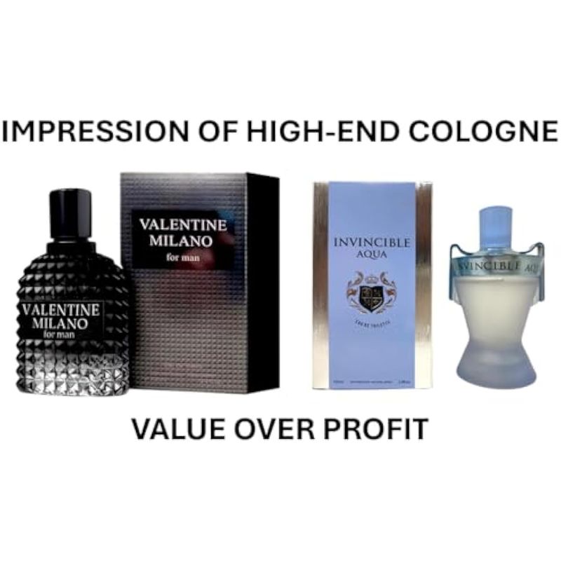 BELLEZA Y SALUDPERFUMESPERFUME PARA HOMBREVALENTINE MILANO y (INVINCIBLE AQUA Colonia para hombre, paquete combinado de fragancia 3.4 oz/3.4