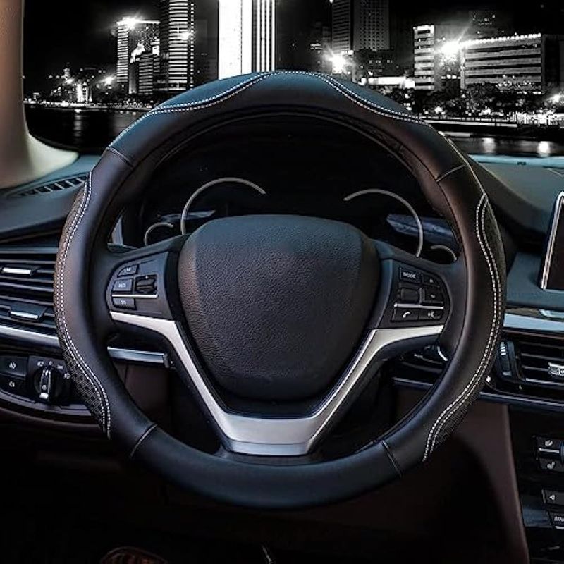 RODADOSHERRAMIENTAS PARA AUTOValleycomfy - Funda para volante universal de 15 pulgadas/38cm, de piel auténtica, transpirable,