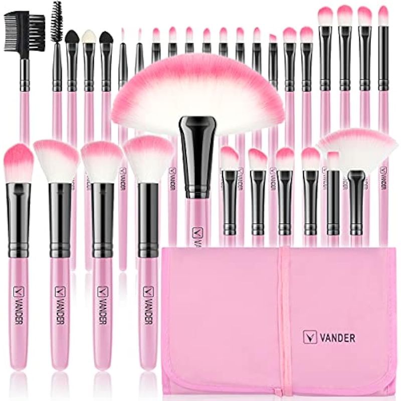 VANDER - Juego de 32 brochas de maquillaje, cerdas sintéticas suaves de calidad profesional de