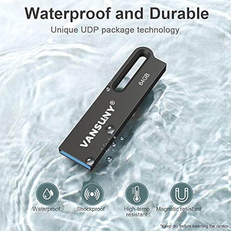 Vansuny Memoria USB 3.0 de alta velocidad impermeable de metal de 64 GB, memoria portátil para