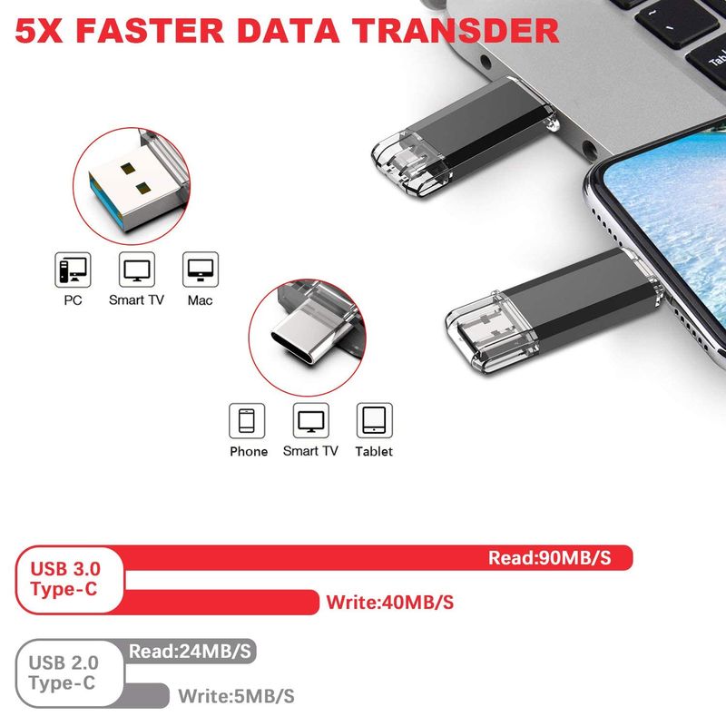 VANSUNY MEMORIA USB 3.0 OTG DE 64 GB 2 EN 1 CON LLAVERO USB TIPO C DUAL USB THUMB DRIVE PHOTO STICK PARA TELéFONOS INTELIGENTES ANDROID, COMPUTADORAS, MACBOOK, TABLETAS, PC