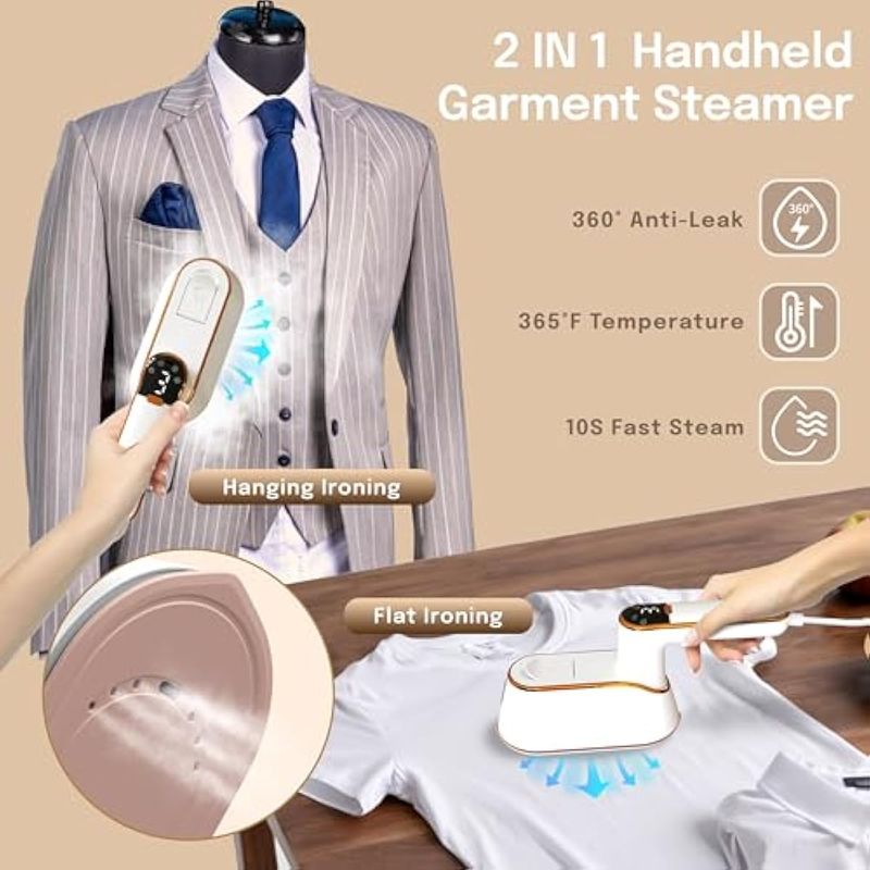 Calentamiento rápido 10S y 1300 W: con una alta potencia de 1300 W, este vaporizador mantiene una temperatura constante de 302 °F, asegurando una eliminación eficiente de arrugas. Con calentamiento rápido de 10 segundos, 3 niveles de vapor y solo 2 minutos para planchar una camisa, supera a las planchas de vapor tradicionales, revitalizando la ropa en un tiempo récord. Además, su capacidad de depósito de agua de 3.7 fl oz permite sesiones de planchado prolongadas sin recargas frecuentes. Perfecto para estudiantes, profesionales, viajeros frecuentes o cualquier persona que busque ropa sin arrugas.