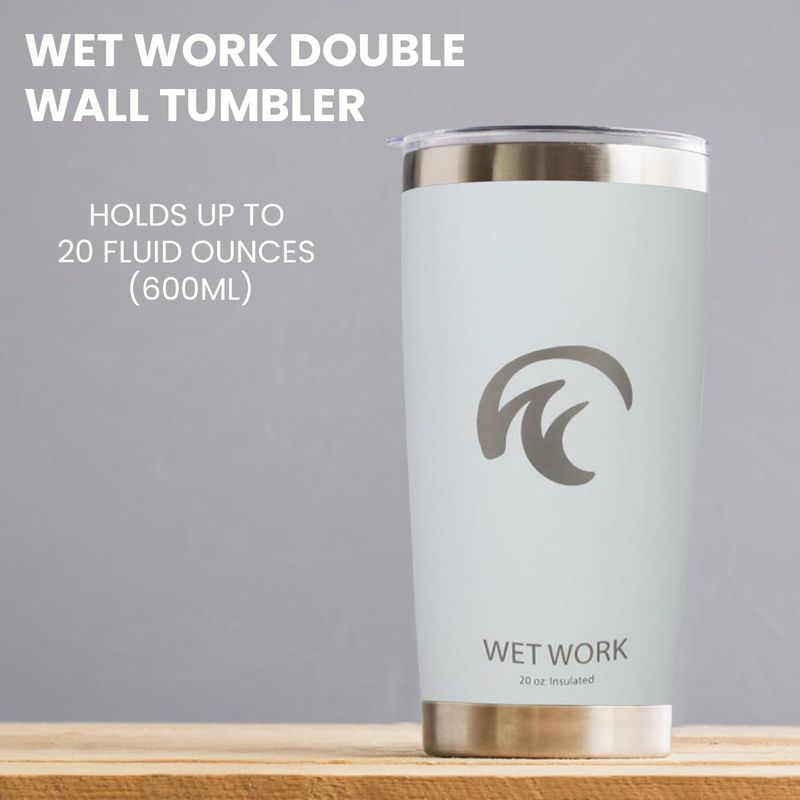 WET WORK Vaso de doble pared: este vaso de acero inoxidable de doble pared de alta resistencia de 20 onzas está construido con aislamiento adicional para mantener tus bebidas frías y tus bebidas calientes calientes. Con una boca ancha para que puedas añadir fácilmente hielo, azúcar o más a tu bebida favorita y luego utilizar un cepillo para limpiar el interior cuando termines. Este vaso también cuenta con una pequeña boquilla para tu popote reutilizable no incluido y una tapa superior abatible para que puedas llevarlo cómodamente contigo dondequiera que vayas