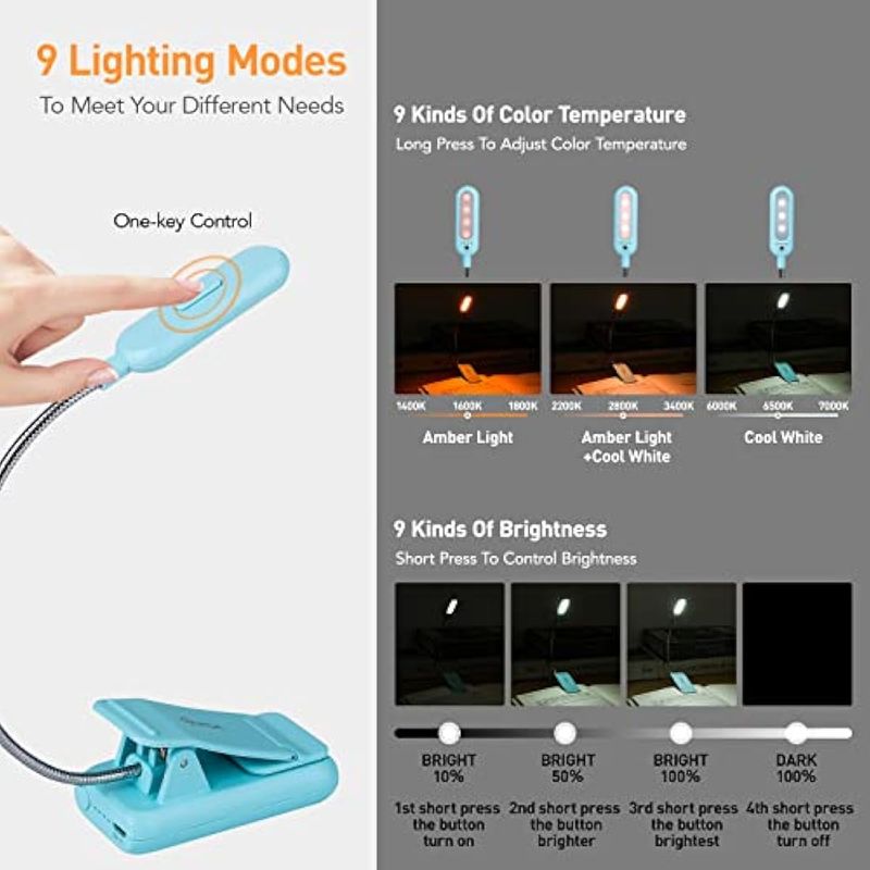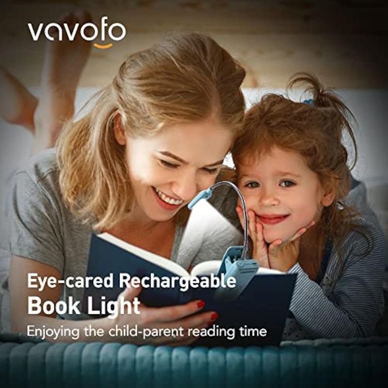 VAVOFO Luz de libro recargable, bloqueo de luz azul, luz de lectura ámbar de 1600 K, luz de lectura