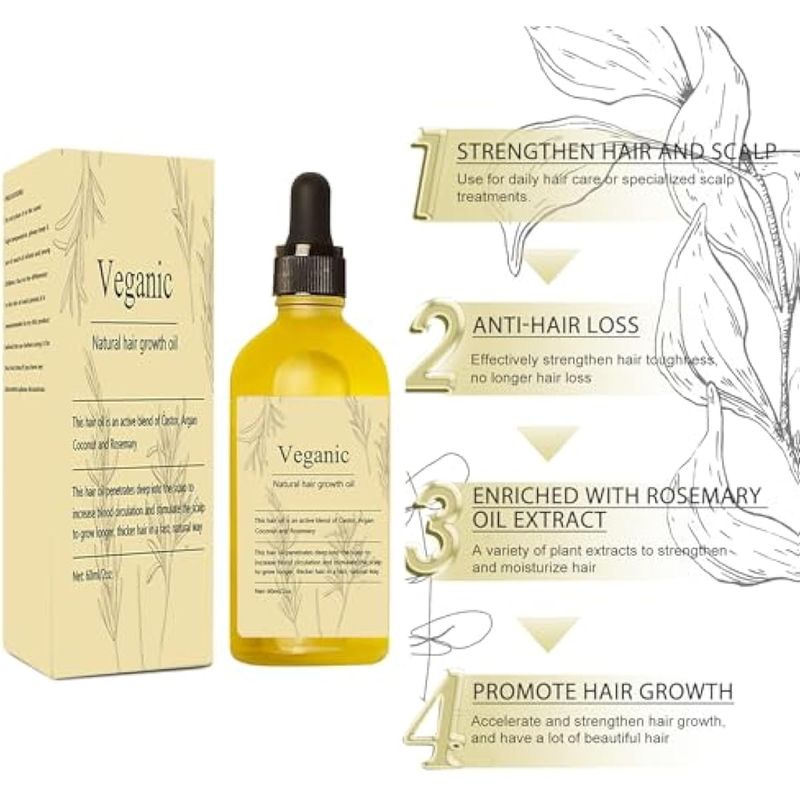 VEGANIC - ACEITE NATURAL PARA EL CRECIMIENTO DEL CABELLO, 3 UNIDADES, ACEITE DE ROMERO PARA EL CRECIMIENTO DEL CABELLO, ORGáNICO, ACEITE VEGANO PARA CABELLO SECO Y DAñADO Y CRECIMIENTO
