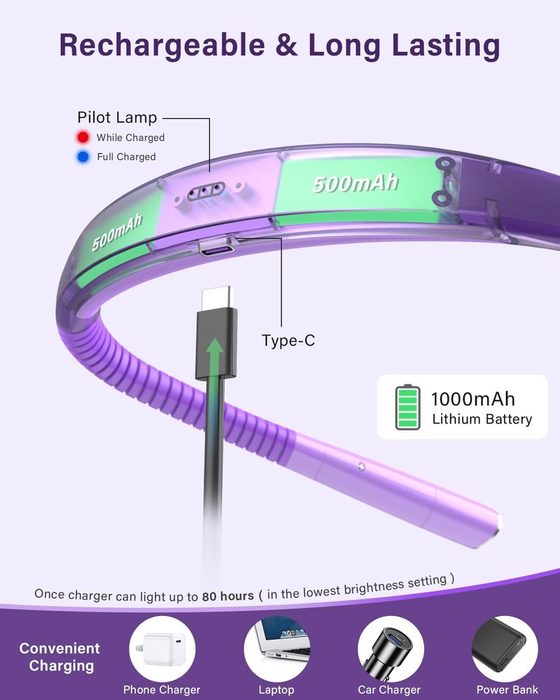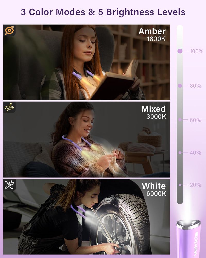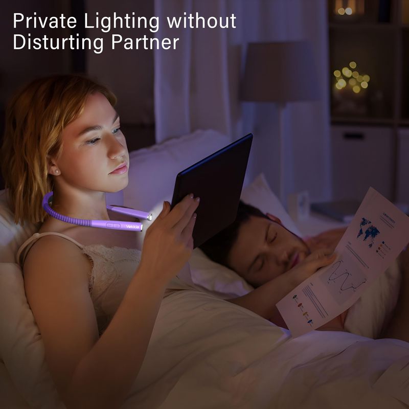 Vekkia La luz LED recargable de lectura para el cuello, luz de libro para leer en la cama, 3 colores
