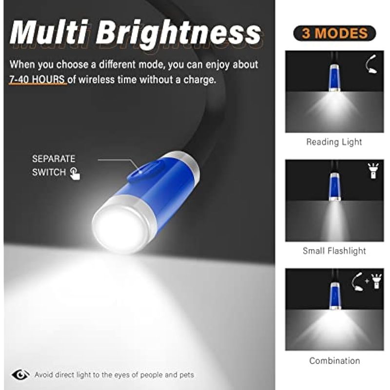Vekkia Luz LED recargable de lectura para el cuello, luces de libro para leer en la cama, 3 niveles